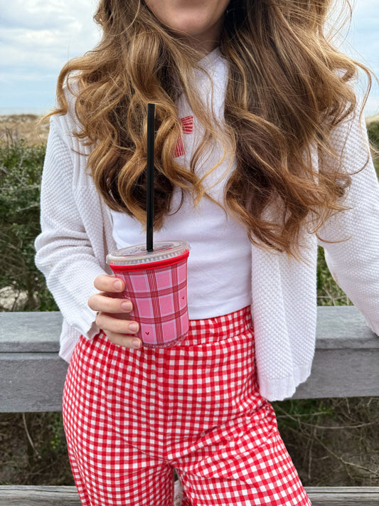 Pink Checkered Hearts Coffee Sleeve